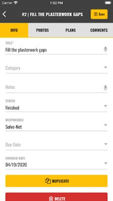 With this app, you will easily, quickly and remotely generate punch lists from construction sites or when working in the field, delegate repairs of defects, assign tasks to team members and oversee building works.